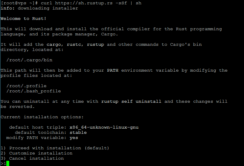 Installing Rust on a linux machine is very easy as it comes with a ready-made script but first , a basic linux machine from MVPS.NET , an update and curl are required: