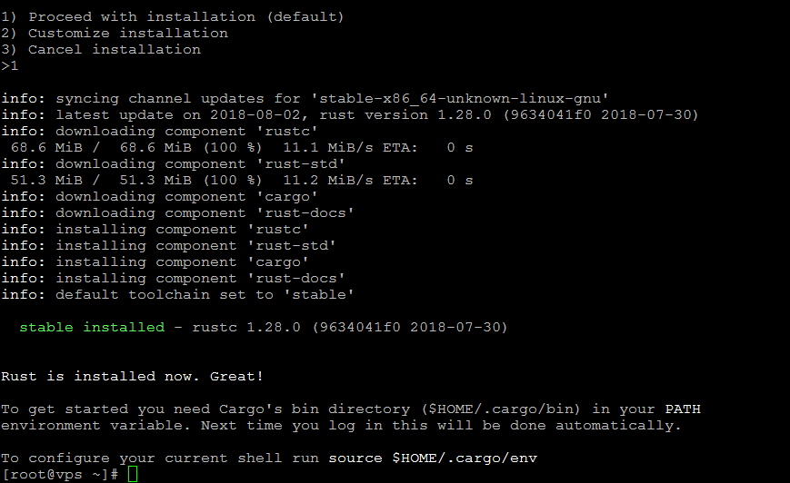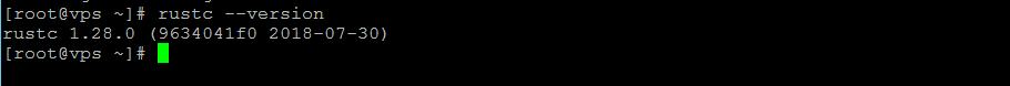 The final step is to logout and the back in. To make sure Rust was installed correctly, insert the following command to check the version: