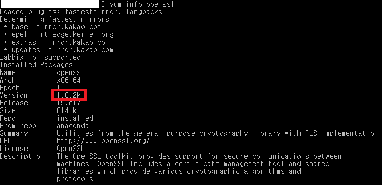 OpenSSL은 linux를 설치하면 기본적으로 설치가 되어있다. 하지만 패치를 진행하지 않으면 보안에 취약할수도 있으니 자주 패치를 반영해 주는것이 좋다. 필자는 CentOS 7.7 이고 어떤 OpenSSL이 설치가 되어 있는지 확인을 해보겠다.